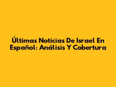 Últimas Noticias De Israel En Español: Análisis Y Cobertura