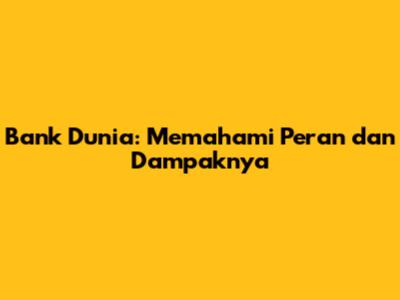 Bank Dunia: Memahami Peran Dan Dampaknya