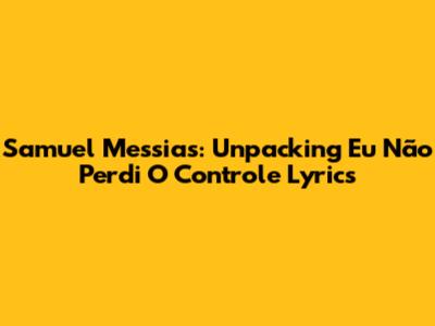 Samuel Messias: Unpacking 'Eu Não Perdi O Controle' Lyrics