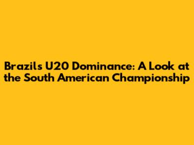 Brazil's U20 Dominance: A Look At The South American Championship