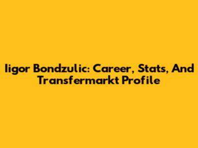 Iigor Bondzulic: Career, Stats, And Transfermarkt Profile