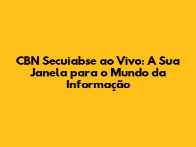Não perca tempo! Comece agora mesmo a desfrutar de toda a informação e análise que a CBN Secuiabse ao Vivo tem a oferecer. Mantenha-se conectado, informado e preparado para enfrentar os desafios do mundo moderno. A CBN está pronta para ser sua companhia diária, sua fonte de informação e sua janela para o mundo.