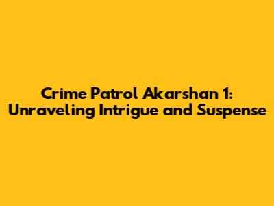 Hey there, crime enthusiasts! Buckle up, because we're diving deep into the captivating world of Crime Patrol Akarshan 1. This isn't just your average true crime show, folks. It's a rollercoaster of suspense, mystery, and the raw realities of human behavior. If you're anything like me, you're probably hooked on the thrill of the chase, the puzzle of piecing together clues, and the satisfaction of seeing justice served. Well, get ready, because we're about to dissect the gripping narratives of Akarshan 1, exploring the cases that left us on the edge of our seats and the lessons they imparted. This deep dive will analyze the show's impact, the storytelling techniques employed, and, of course, the chilling cases that defined the season. Prepare to be engrossed as we explore the heart of Crime Patrol Akarshan 1 and analyze the show's impact on viewers.