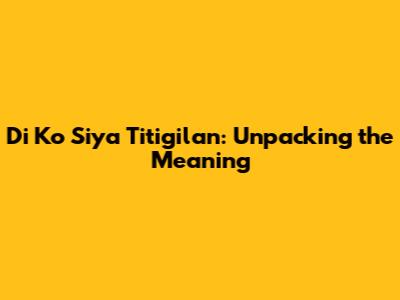 Hey guys, have you ever heard a song that just hits you right in the feels? Like, you can't stop listening to it, and you just know there's more to it than meets the ear? Well, buckle up, because today we're diving deep into the Di Ko Siya Titigilan lyrics. This track has been making waves, and for good reason. It's not just a catchy tune; it's a story, an anthem, a whole mood packed into a song. We're going to break down what makes these lyrics so powerful, explore the emotions they evoke, and maybe even figure out what the artist is trying to tell us. So, grab your favorite drink, get comfy, and let's unravel the magic behind "Di Ko Siya Titigilan."