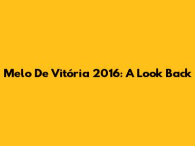 Melo De Vitória 2016: A Look Back