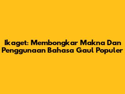 Ikaget: Membongkar Makna Dan Penggunaan Bahasa Gaul Populer