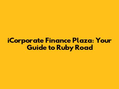 Hey guys! If you're looking for information about iCorporate Finance Plaza on Ruby Road, you've come to the right place. This guide will give you a deep dive into everything you need to know, from its location and what kind of businesses operate there, to why it's such a significant spot for finance. Let's get started!