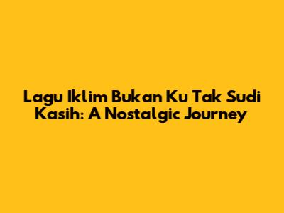 Hey guys! Today, let's dive deep into one of the legendary songs from the Malaysian rock band Iklim, "Bukan Ku Tak Sudi Kasih." This song isn't just a tune; it's an anthem that resonates with so many of us, carrying waves of nostalgia and profound emotions. We're going to explore why this song remains timeless and beloved. So, grab your headphones, and let’s get started!
