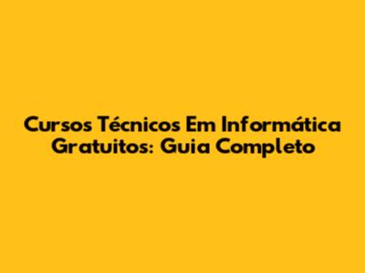 Cursos Técnicos Em Informática Gratuitos: Guia Completo