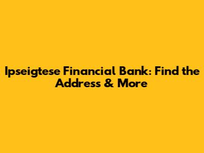 Hey guys! Ever find yourself needing to track down the exact address for Ipseigtese Financial Bank? Maybe you're sending important documents, planning a visit, or just need it for your records. Whatever the reason, getting the correct address is super important. This article will guide you through everything you need to know about finding the Ipseigtese Financial Bank address and other helpful info.