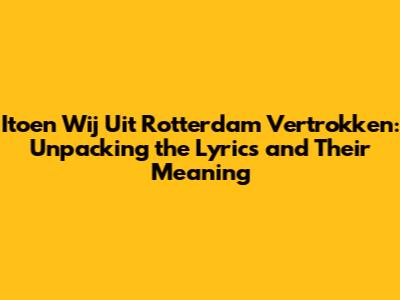 Hey guys! Ever stumbled upon a song that just hits different? That's exactly what happens when you dive into "Itoen Wij Uit Rotterdam Vertrokken." This Rotterdam-based anthem isn't just a catchy tune; it’s a whole vibe, a story, and a piece of Dutch music history. If you're looking to understand the meaning behind the lyrics and why this song resonates so much with people, especially those with roots in Rotterdam, you've come to the right place. We’re going to break down the lyrics, explore the cultural context, and see what makes this track a classic.