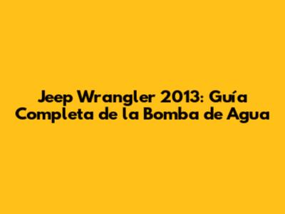 La bomba de agua es un componente esencial para el funcionamiento de tu Jeep Wrangler 2013. Entender su función, reconocer los signos de problemas y saber cómo reemplazarla (o buscar ayuda profesional) te ayudará a mantener tu Jeep en óptimas condiciones. Recuerda realizar un mantenimiento preventivo regular y utilizar repuestos de calidad para asegurar que tu vehículo te acompañe en muchas aventuras por venir. ¡Disfruta de tu Jeep y de todos los caminos que te esperan!