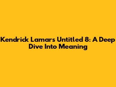 Kendrick Lamar's 'Untitled 8': A Deep Dive Into Meaning