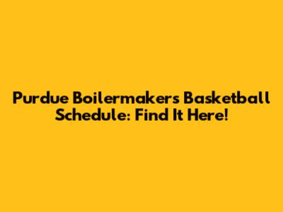 Purdue Boilermakers Basketball Schedule: Find It Here!