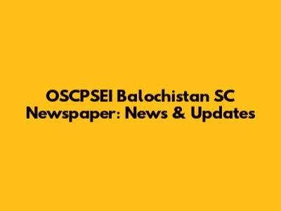 OSCPSEI Balochistan SC Newspaper: News & Updates