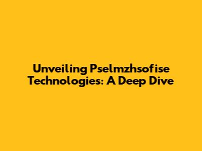 Unveiling Pselmzhsofise Technologies: A Deep Dive