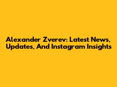 Alexander Zverev: Latest News, Updates, And Instagram Insights