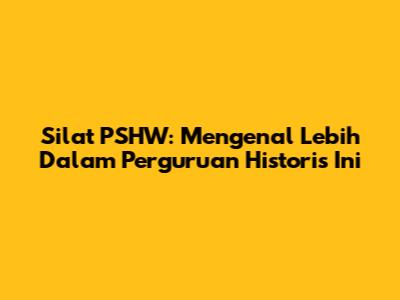 Silat PSHW: Mengenal Lebih Dalam Perguruan Historis Ini