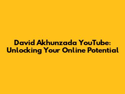 David Akhunzada YouTube: Unlocking Your Online Potential