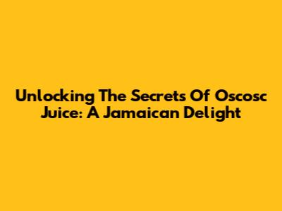 Unlocking The Secrets Of Oscosc Juice: A Jamaican Delight