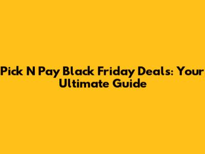 Pick N Pay Black Friday Deals: Your Ultimate Guide