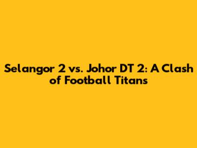 Hey guys, let's dive into the exciting world of football and take a closer look at a match-up that's sure to get the adrenaline pumping: Selangor 2 versus Johor DT 2. This isn't just any game; it's a battle between two teams with rich histories, passionate fan bases, and a burning desire for victory. We'll explore the key aspects of this thrilling encounter, from team dynamics and player performances to strategic approaches and what makes this rivalry so compelling. Get ready for a deep dive into the heart of the action! This will provide valuable insights for fans, analysts, and anyone looking to understand the nuances of this captivating football contest. This is going to be good!