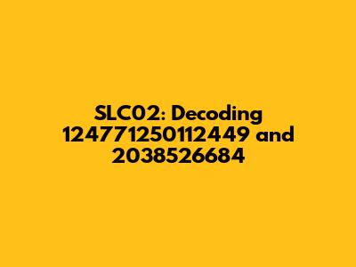 Now, let's tackle those massive numbers: 124771250112449 and 2038526684. These are some seriously long digits! What could they possibly signify in relation to SLC02? The possibilities are vast, but we can explore some common interpretations. These numbers might represent timestamps, unique identifiers, or data values associated with whatever SLC02 represents. Analyzing their structure and potential relationships can offer valuable clues. The key here is to consider the context in which these numbers appear alongside SLC02. Are they used in a database? Are they associated with a specific product or process? The answers to these questions will help narrow down the possibilities.