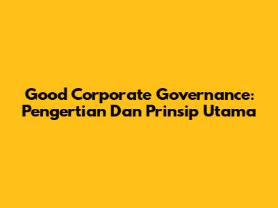 Good Corporate Governance: Pengertian Dan Prinsip Utama