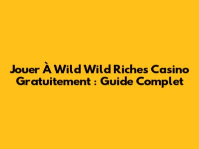 Jouer À Wild Wild Riches Casino Gratuitement : Guide Complet