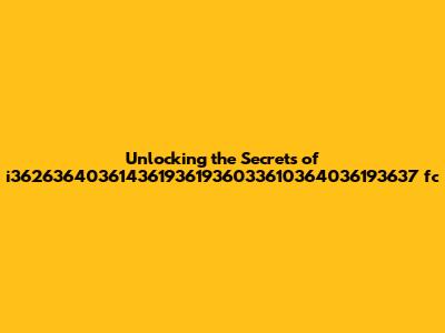 Imagine you encounter i3626364036143619361936033610364036193637 fc as part of an error message while using a specific software application. The error message might read something like: "Error: Invalid file format. Code: i3626364036143619361936033610364036193637 fc." In this case, the string likely serves as an error code, which developers use to identify and diagnose specific issues within the software. By searching for this error code in the application's documentation or online forums, you might find explanations of the error and potential solutions. The error code could be linked to a specific function or module within the application, providing valuable insights into the cause of the error. Additionally, the error message might contain other contextual information, such as the name of the file that caused the error or the specific operation that failed. Analyzing this information in conjunction with the error code can help you troubleshoot the problem and find a resolution.