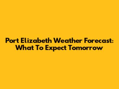 Port Elizabeth Weather Forecast: What To Expect Tomorrow