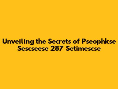 Unveiling The Secrets Of Pseophkse Sescseese 287 Setimescse