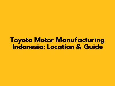 Toyota Motor Manufacturing Indonesia: Location & Guide